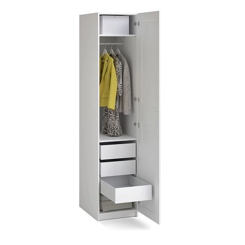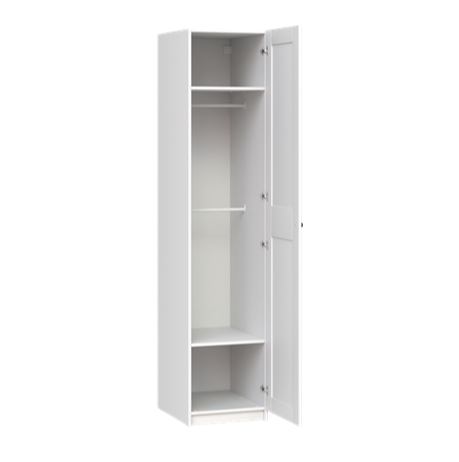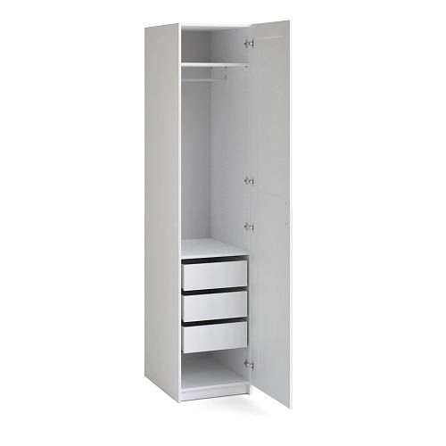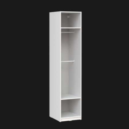 Может комплектоваться: дверью МАКС 50 (в том числе с зеркалом) с комплектом фурнитуры, полками, выдвижными ящиками, выдвижными брючницами.