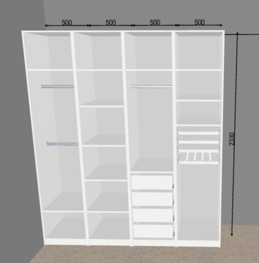 Этот стильный и вместительный стеллаж идеально впишется в вашу гардеробную систему, став незаменимым помощником в организации пространства. Благодаря разнообразным дополнительным элементам, вы легко создадите уютное место хранения по собственному вкусу!