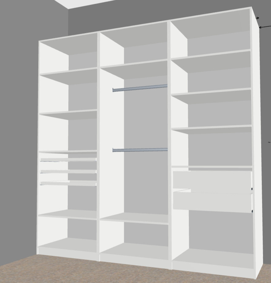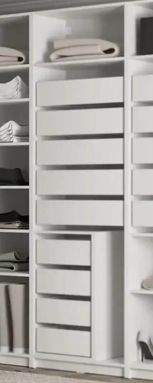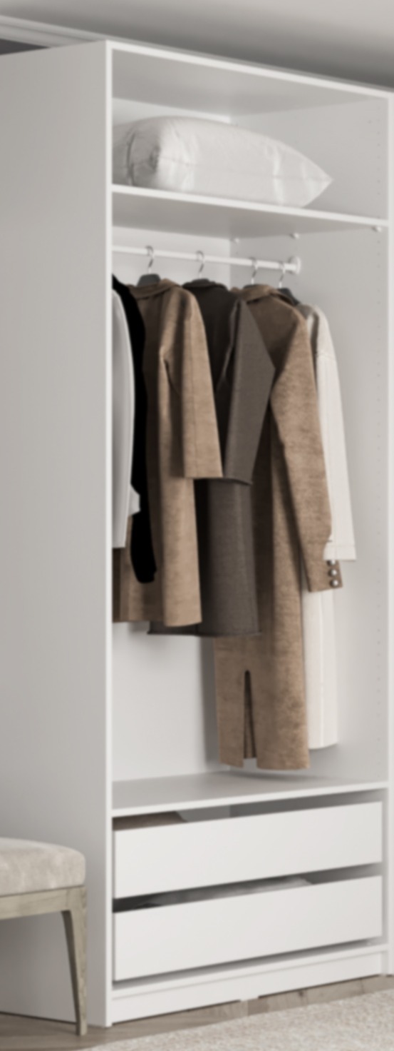 Этот стильный и вместительный стеллаж идеально впишется в вашу гардеробную систему, став незаменимым помощником в организации пространства. Благодаря разнообразным дополнительным элементам, вы легко создадите уютное место хранения по собственному вкусу!
