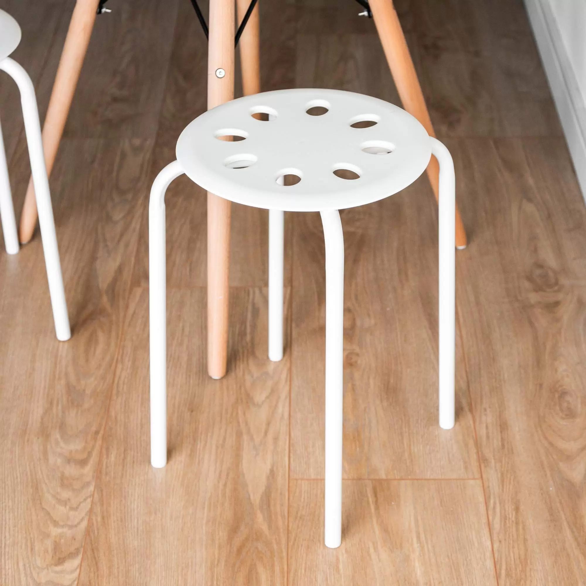 Табурет Axel аналог икеа мариус (MARIUS). Сиденье табурета пластиковое, а ножки металлические, благодаря чему, он очень прочный. Благодаря своей компактности, штабелируемый табурет, позволяет экономить пространство в помещении.