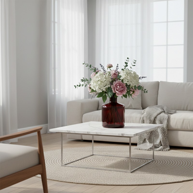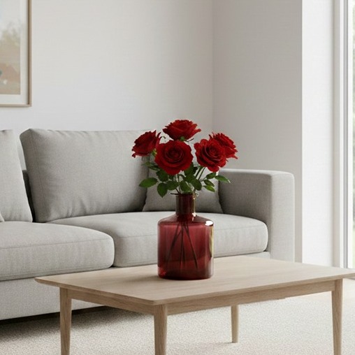 Стекло придает изделию прозрачность и утонченность, подчеркивая красоту цветов и наполняя пространство гармонией.