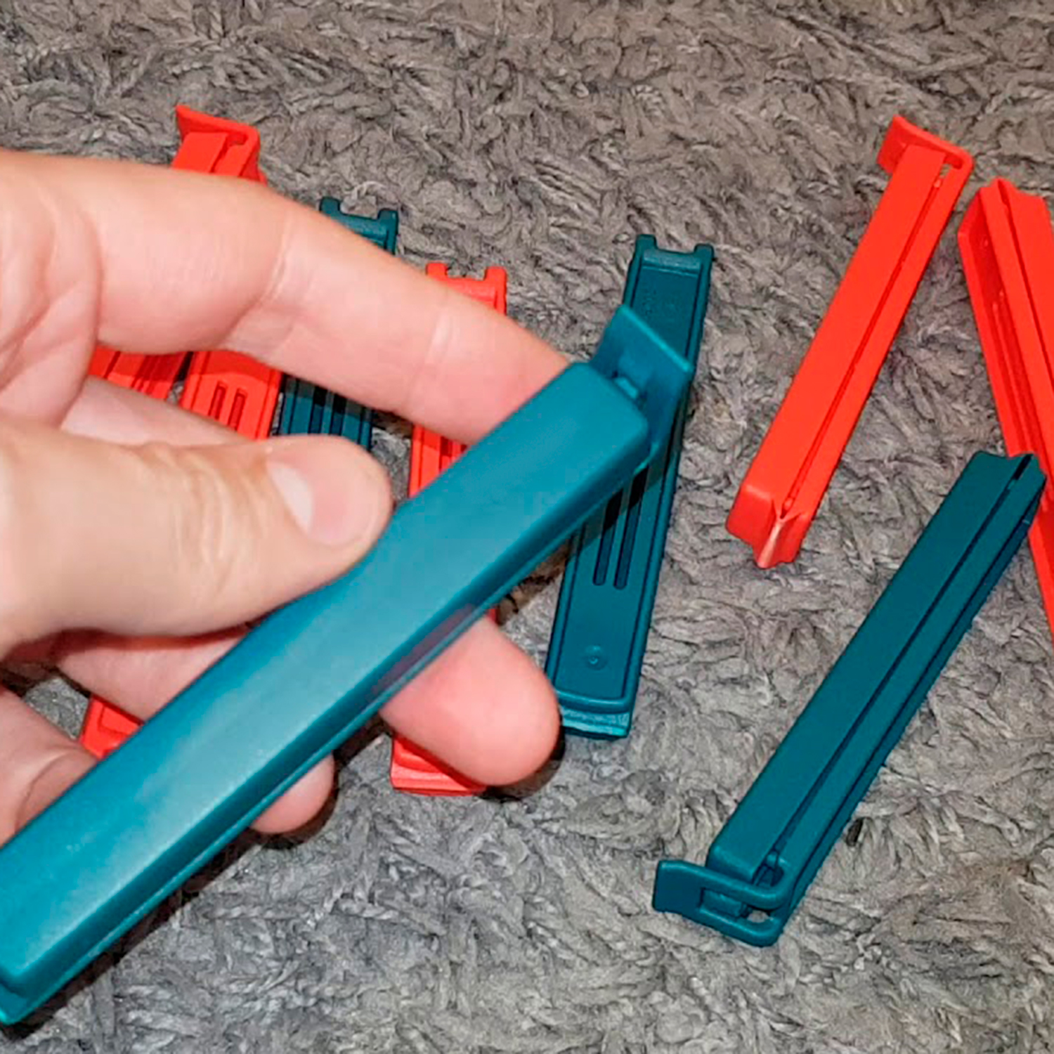 В наборе 30 зажимов. Из них: 20 штук размером 6 см и 10 штук размером 11 см.