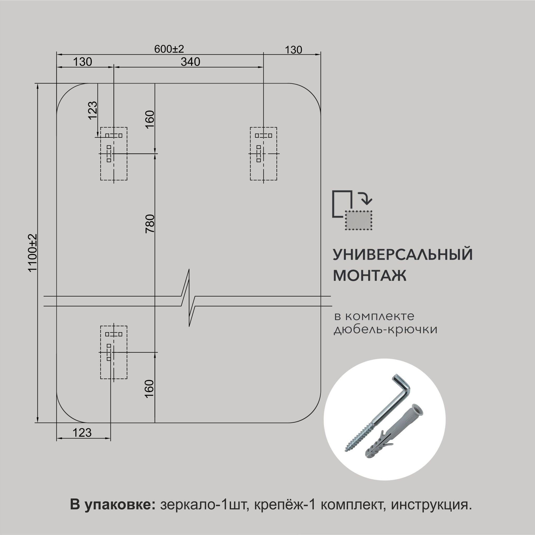 Форма зеркала | прямоугольная с закруглёнными краями |
